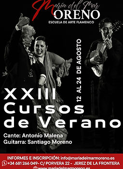 Los cursos estarán acompañados por el cante de Antonio Malena y la guitarra de Santiago Moreno y otros artistas de la Compañía de María del Mar Moreno.